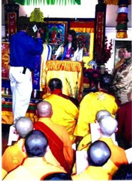 大會現場還播放了金巴仁波切(金巴法王)九歲時在春節法會上現場為大眾所作佛法的開示,當時參加者有格西、大活佛、大法師與大居士們,格西、活佛、法師們每個都發言,當天公眾評價佛法講得最好的就是兩位年紀最小的仁波切,一位是九歲的金巴義培珠仁波切(金巴法王),一位是她的哥哥恆公仁波切(摩訶法王),當時只有十二歲,包括當時在場高齡八十的那仁巴格西都沒有他們兩位年幼的仁波切講得精道和高深微妙。