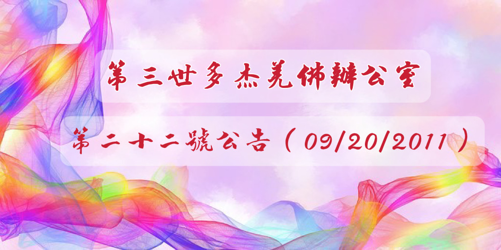 最近,網路上出現了一些佛弟子言辭不符合第三世多杰羌佛教化修行的文章和言論,其實,這些本屬是非,不該提及,更何況其中大有別有用心之人,冒名代表是第三世多杰羌佛的弟子,故意言行失德, 但我們不管是什麼人,畢竟是眾生,是我們關心的對象,他們的偏頗言辭,落入偏執見中,故予公告。